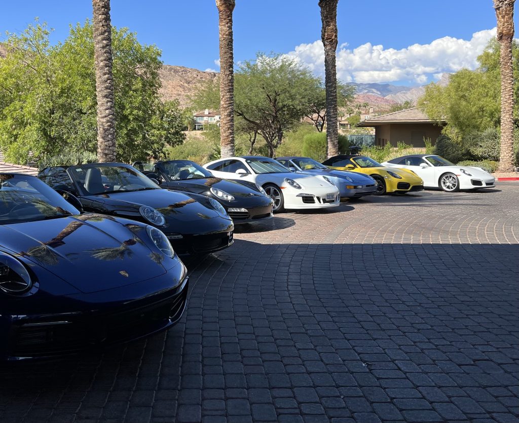 On Sunday September 9 LVR met for another good brunch at Red Rock Country Club. The day started out beautifully with temps in the 70’s, clear and sunny. Upon arriving at Red Rock you were confronted with a blaze of color- Porsches of all hues and models- a truly gorgeous sight.