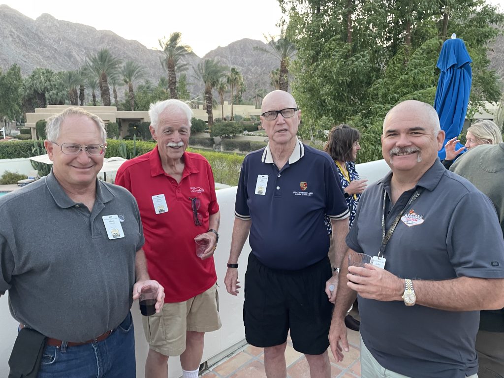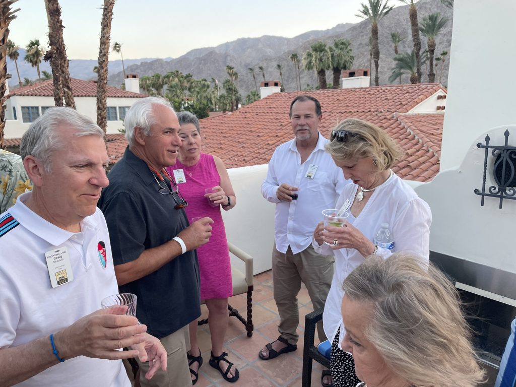 As I compiled the list of LVR members signed up to attend the 2023 PCA Parade I was surprised that there were a number of them who I had never met! Being president of the region, I felt we needed to take action. First Lady, Dana and I looked at the Parade schedule and noticed an evening that had no activities or awards banquets planned. Realizing that many would be dining off-site and would be returning later, we began planning for WINEDOWN. The Board approved expenditures and so we were able to purchase wine and bites for that day. One of our biggest issues was finding a location without having to rent a room. As it turned out, our 2nd story room had a large balcony that easily accommodated our party. We entertained 27 of the 38 members of our region that attended the Parade. Although it was quite windy for starters, the breezes receded and we had a wonderful time. It was good to reconnect with our friends and meet members who we had not previously met. And, we came out just right on the available wine!