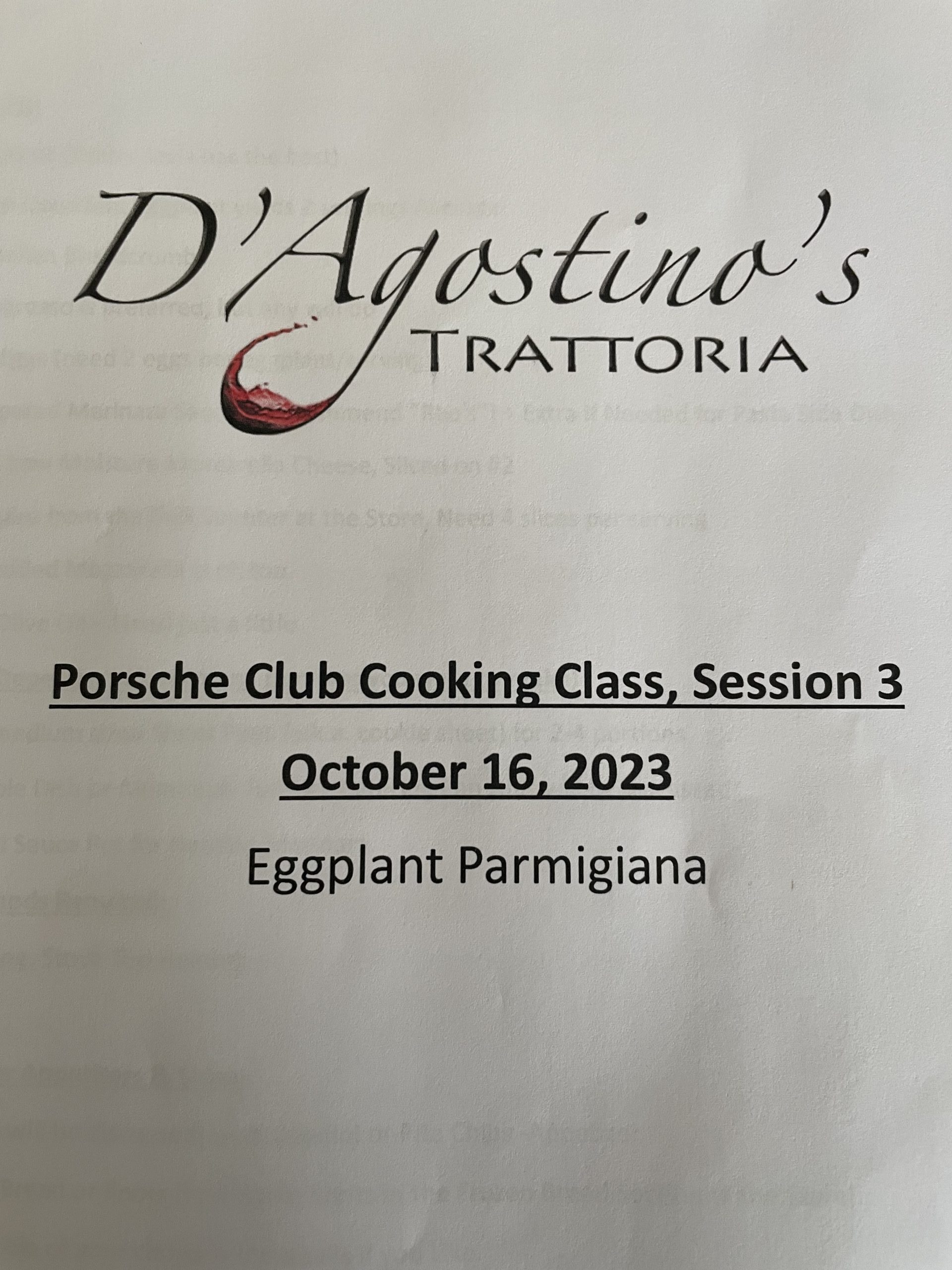 What a time we had with chef Dan at his fine restaurant on October 16th! I’ll have to admit I would have never ordered Eggplant Parmigiana off a menu at a fine restaurant until that night. Chef Dan gave a master class in how to properly prepare and present this fabulous dish. Chef also included facts about how Italian food and wine are different from region to region, along with what sides and appetizers compliment the dinner. A big thank you to Barbara Barron for coordinating this wonderful event!
