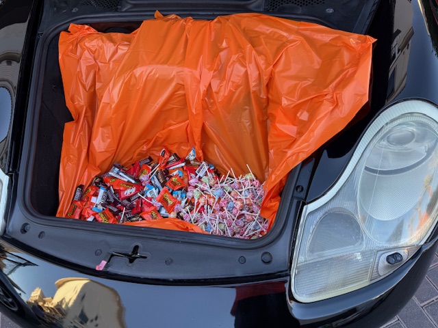 We all thought we had too much candy and would be taking it home. We provided between 150 and 200 pounds of sugary delights in total. Little did we know that in 2024, they had over 4,000 people and expected the same this year, 2025. The exact count is unknown, but suffice to say, when it started at 5:30, we were out of candy in less than an hour! That was truly frightening!