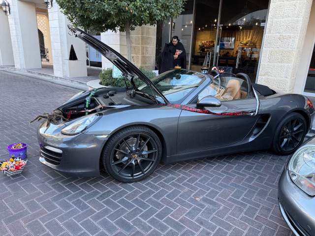 Our group arrived between 3:30 and 4:30. The center had blocked off the streets, and we found our way to Scissors and Scotch. We backed in and opened the trunks.