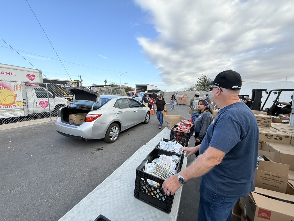 The cars were lined up around the block a few times, and the distribution didn’t end until a bit after 11:00 a.m. It was an incredible experience to be a part of, and I am certain that we will continue to participate in Volunteer Days there. We will also raise money and organize food drives to support their efforts. We are truly blessed to have them in Las Vegas.