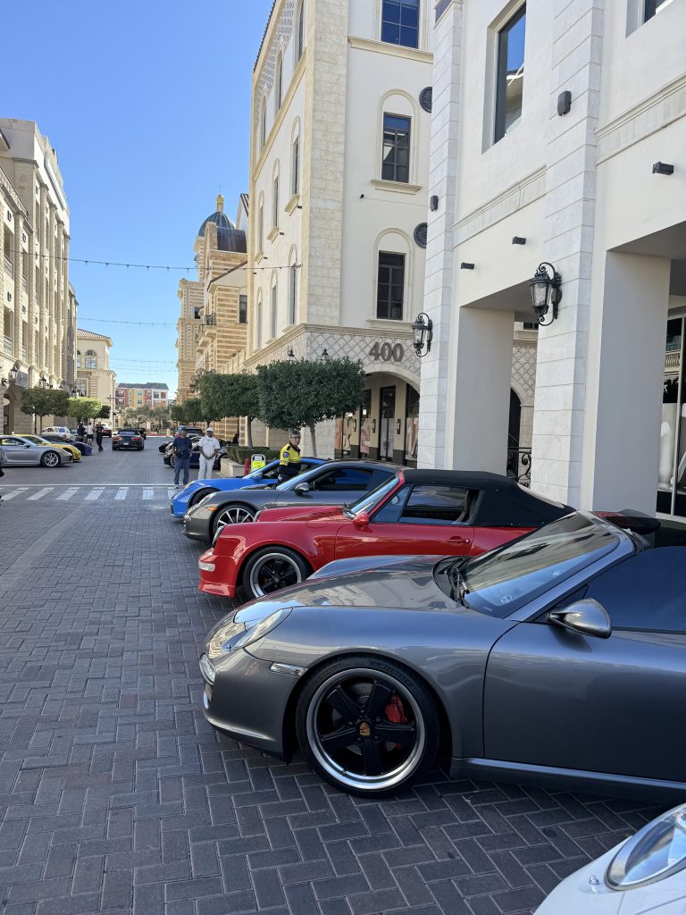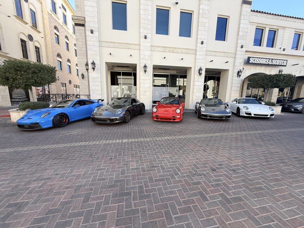 About 20 cars rolled in, lining both sides of the street in front of the two establishments and turning the area into an impromptu Porsche display.