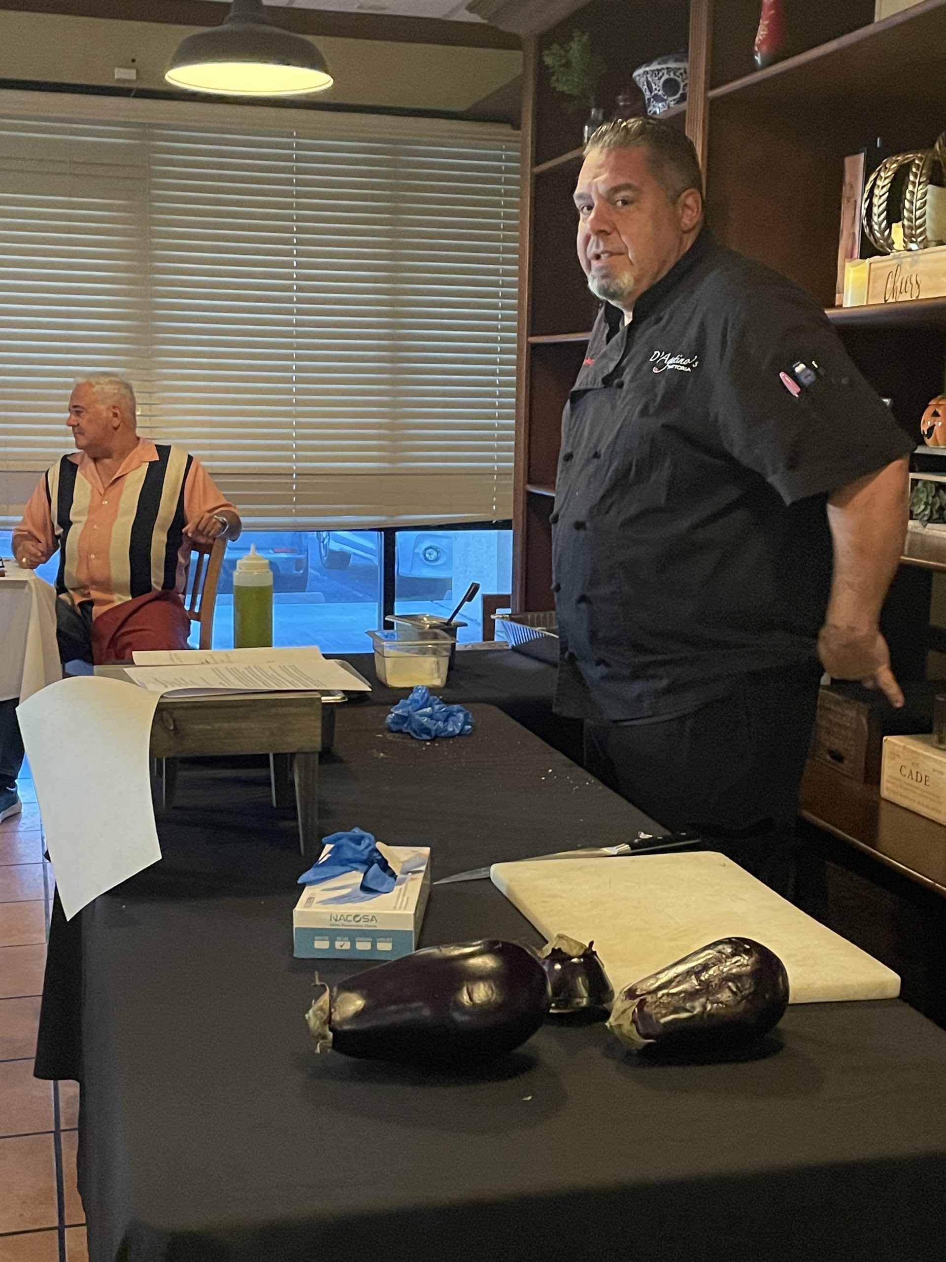 What a time we had with chef Dan at his fine restaurant on October 16th! I’ll have to admit I would have never ordered Eggplant Parmigiana off a menu at a fine restaurant until that night. Chef Dan gave a master class in how to properly prepare and present this fabulous dish. Chef also included facts about how Italian food and wine are different from region to region, along with what sides and appetizers compliment the dinner. A big thank you to Barbara Barron for coordinating this wonderful event!