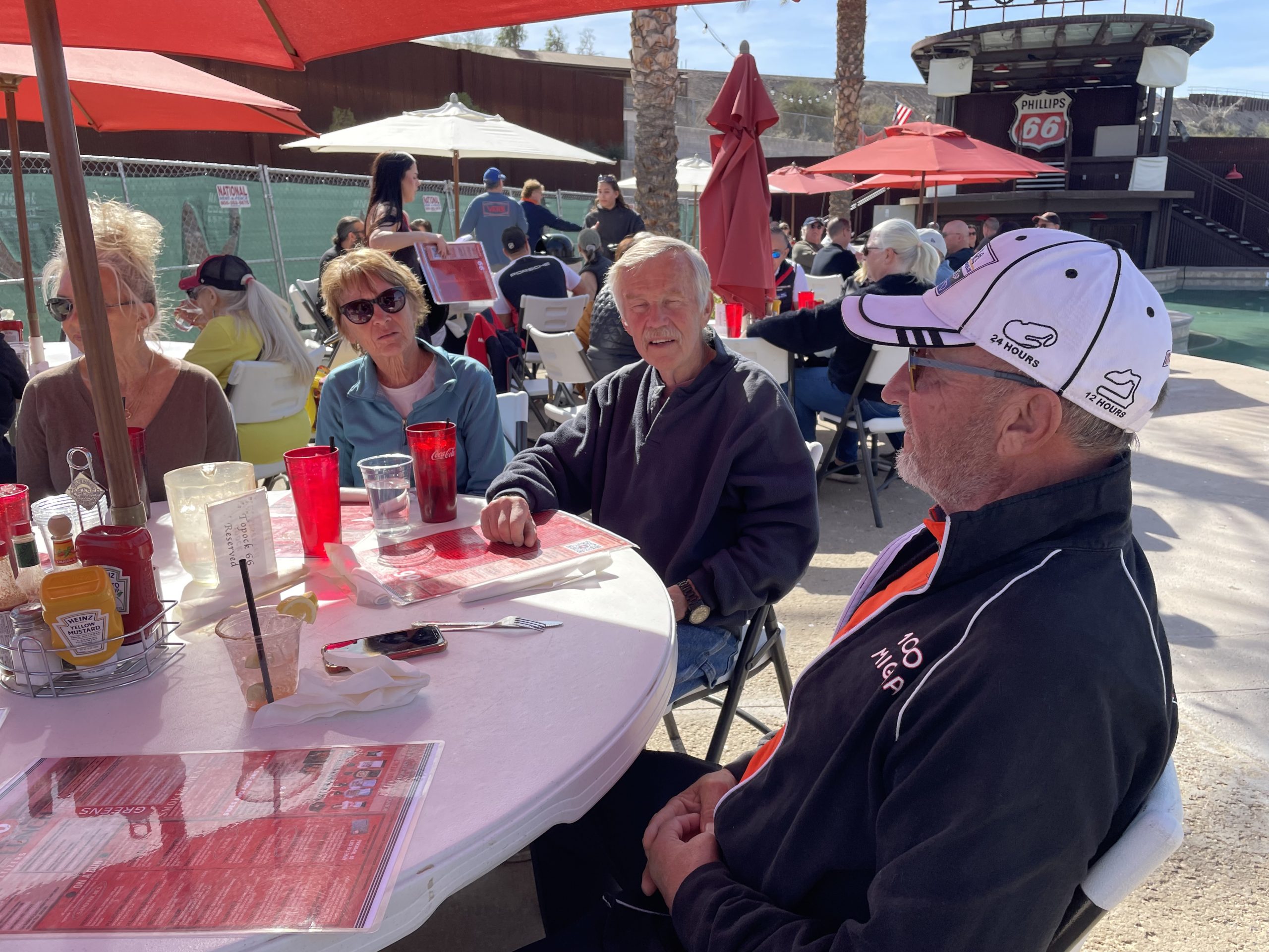 What a gorgeous day in February! 21 Porsches explored the Historic Route 66 drive through Oatman with lunch at the Topock 66 Colorado Bar and Grill. As we arrived in Oatman, we witnessed a wild west shootout. After they dragged the bodies off the street we were able to proceed to Topock AZ.