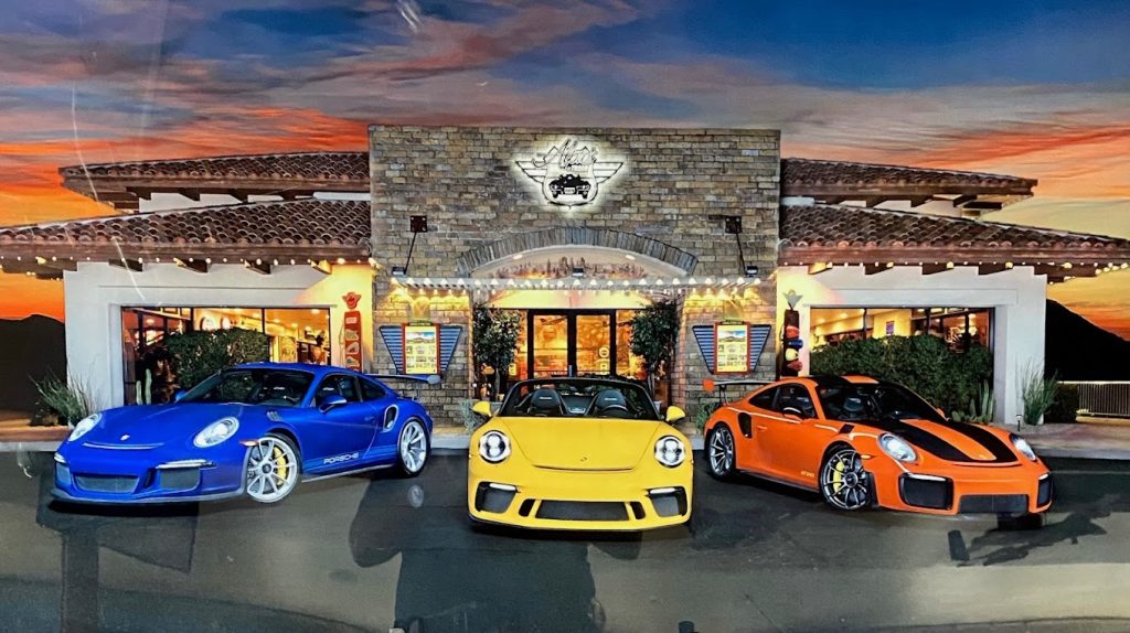 Day 2 of our AZPCA fun run started with Cars & Coffee at Alpio’s at Troon. This location is a venue that can be rented out for special occasions and events. A Cars & Coffee event is held twice a month there. Alpio Barbara, the owner of the venue, is a local businessman and car enthusiast, with a dedicated love for all things Ferrari and Porsche.